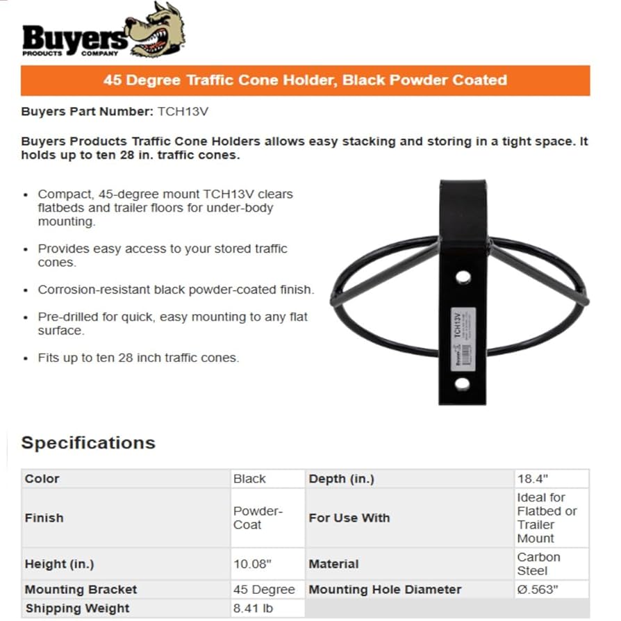 45 Degree Traffic Cone Holder, Black Powder Coated